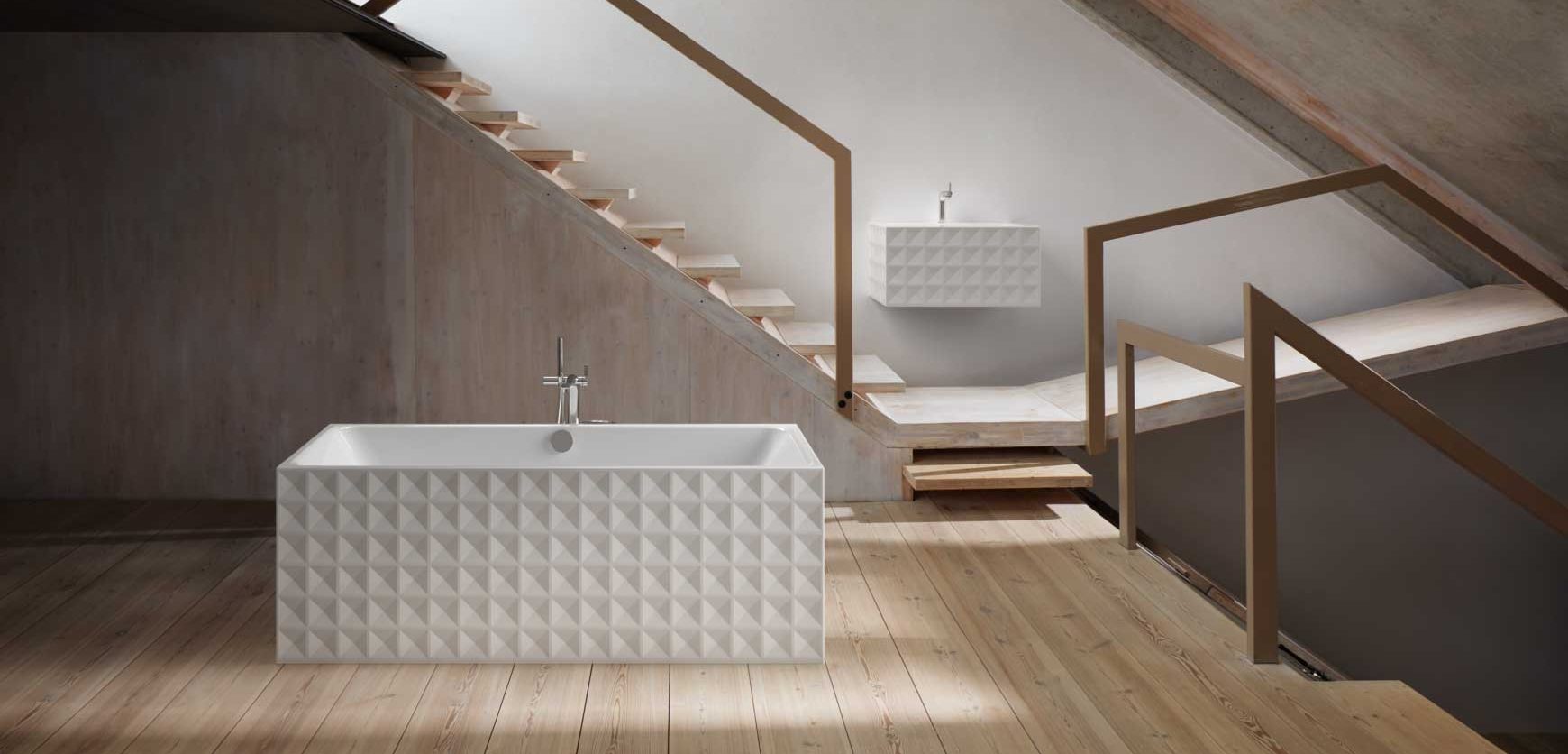 A standard bath is typically made from acrylic and usually enclosed by bath panels to provide clean sharp lines, they're light and easy to clean and maintain.